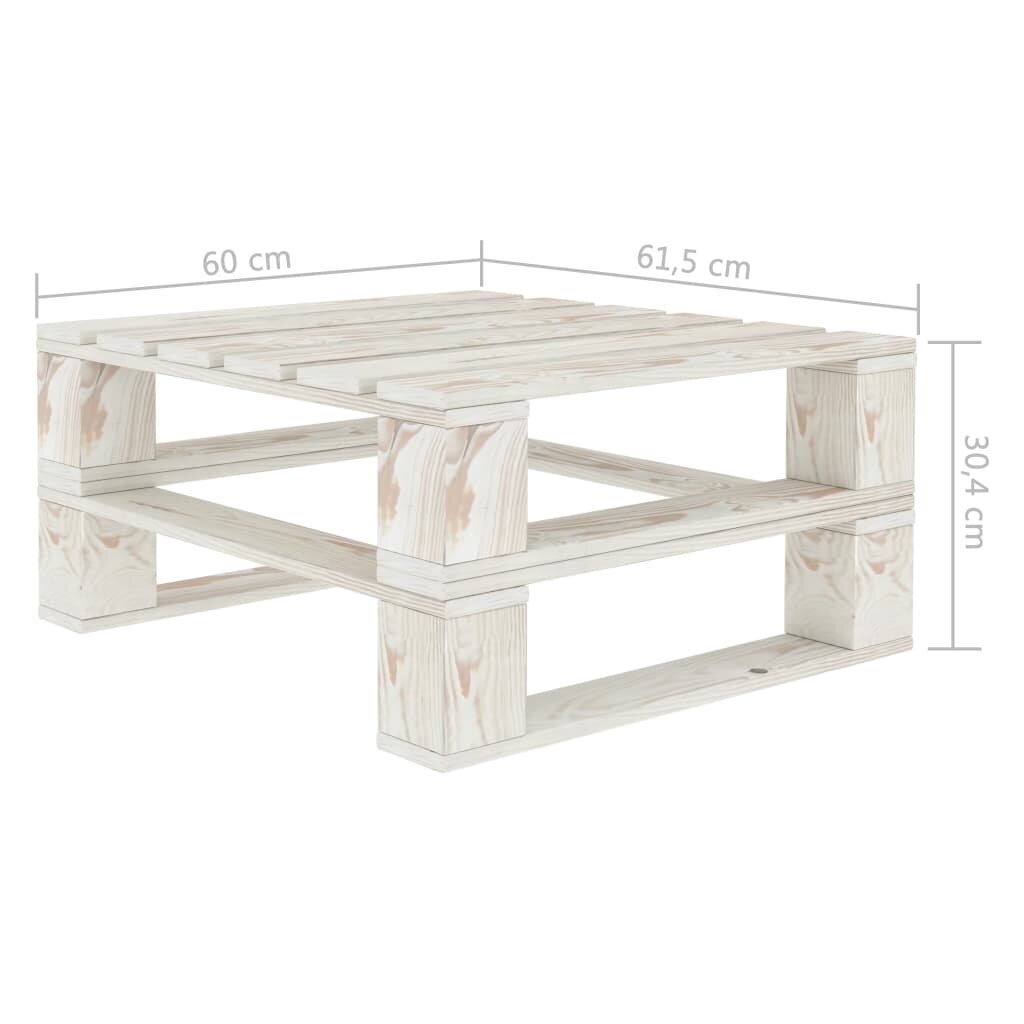 - Stalo/otomanės iš palečių matmenys: 60 x 61,5 x 30,4 cm (ilgis x plotis x aukštis)