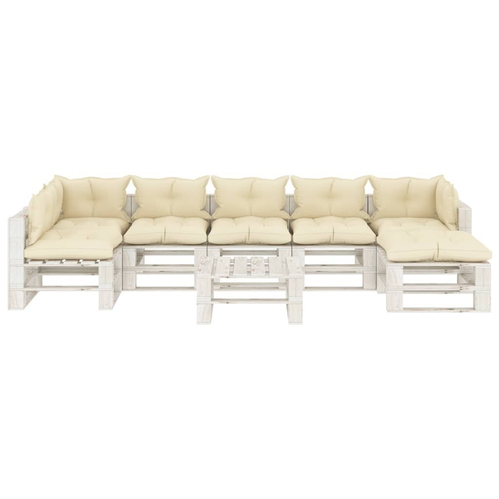Visi šie modernių baldų bruožai leidžia teigti, jog šio stiliaus gaminiai yra paprasti ir tuo pačiu labai universalūs, todėl juos lengva pritaikyti bet kokio dydžio kambariuose. vidaXL Poilsio komplektas iš palečių su pagalvėmis, 8 dalių, mediena patiks tiems, kurie nori sukurti minimalistinę, neperkrautą erdvę, išlaikant tvarkos ir gaivos įspūdį.