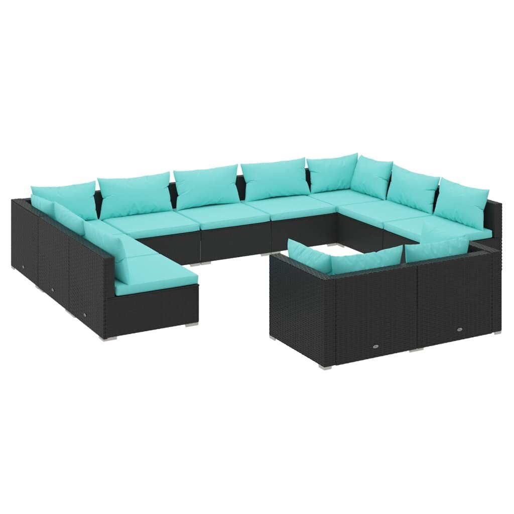 vidaXL Sodo komplektas su pagalvėlėmis, 11 dalių, juodas, poliratanas