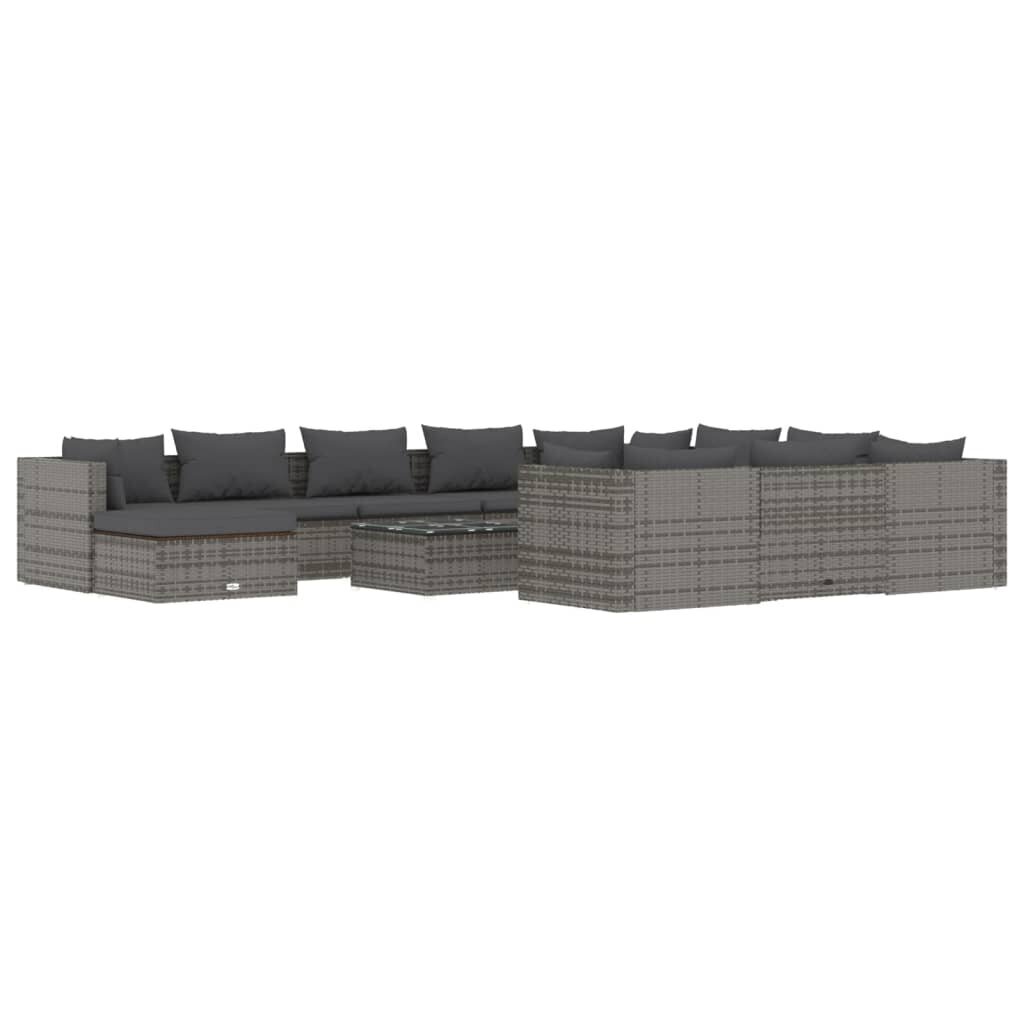 Visi šie modernių baldų bruožai leidžia teigti, jog šio stiliaus gaminiai yra paprasti ir tuo pačiu labai universalūs, todėl juos lengva pritaikyti bet kokio dydžio kambariuose. vidaXL Sodo komplektas su pagalvėlėmis, 12 dalių, pilkas, poliratanas patiks tiems, kurie nori sukurti minimalistinę, neperkrautą erdvę, išlaikant tvarkos ir gaivos įspūdį.