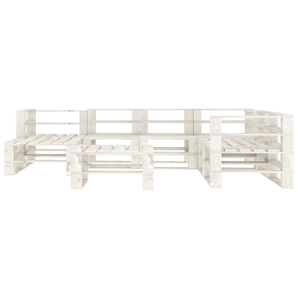 vidaXL Sodo poilsio komplektas iš palečių, 8 dalių, baltas, mediena