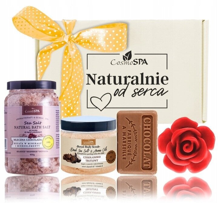 Dovanų rinkiniuose yra tokios sudedamosios dalys kaip vonios druska, kūno šveitiklis, muilas su vanilės kvapu ir rožių muilas su migdolų kvapu, kurie sukuria unikalias ir įsimintinas dovanas.