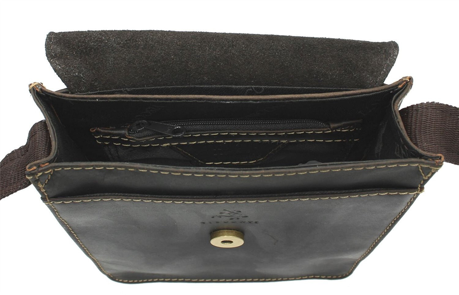 Rankinė yra pagaminta iš natūralios odos ir talpinasi viena erdviame skyriuje, jos matmenys yra 19 cm aukščio, 17 cm pločio, 5,5 cm storio ir 17 cm gylio.