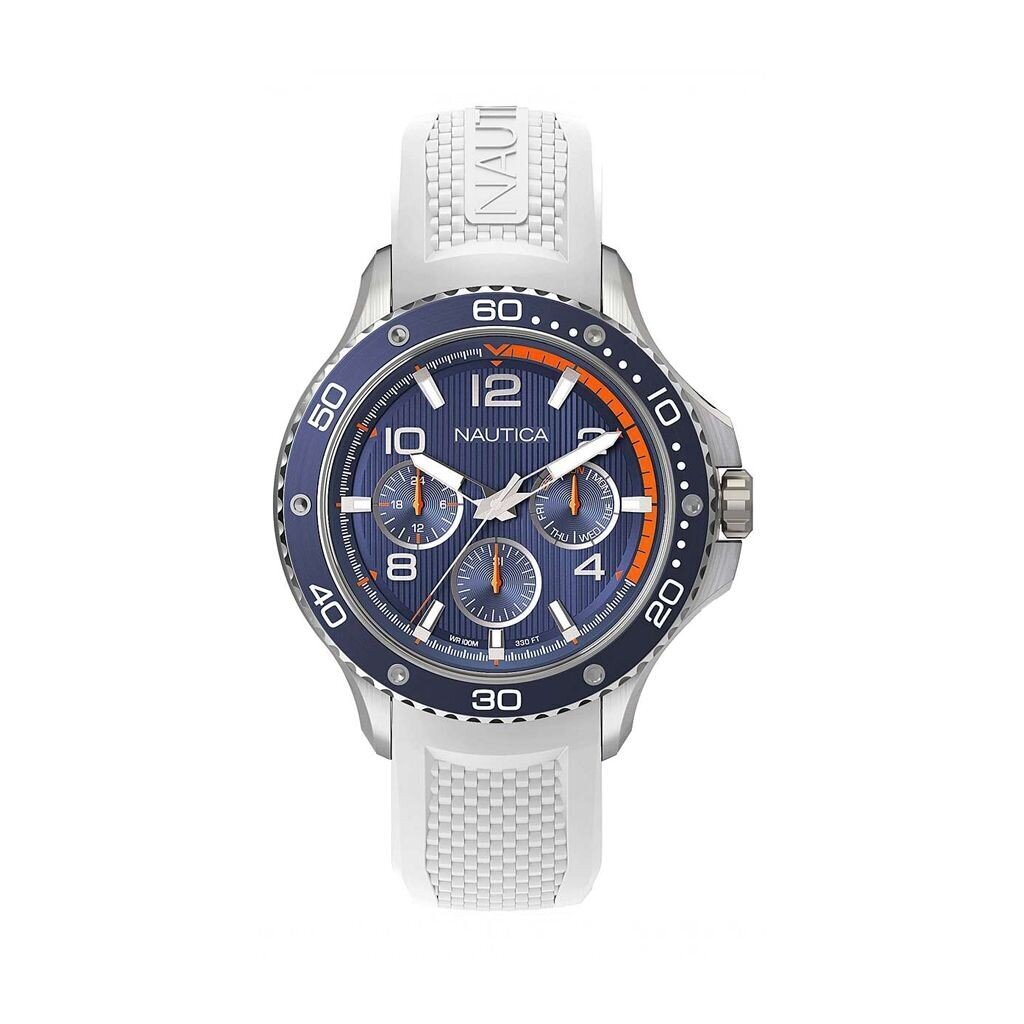 - Aprašymas ir funkcijos: Laikrodžiui yra 3 rodyklės, daugiafunkcis, chronografas, su datų indikatoriumi, analogine skalę su logotipu, mineraliniu stiklu, plieniniu korpusu ir silikoniniu dirželiu.