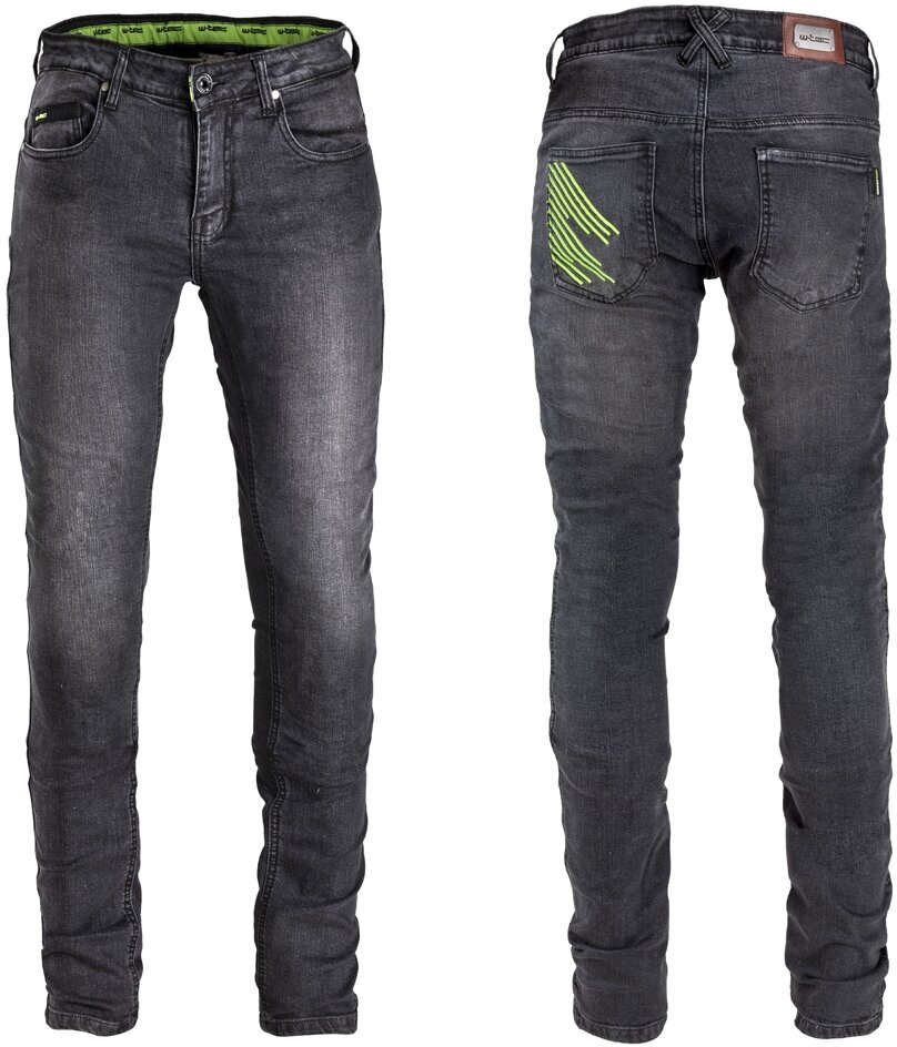 Vyriški džinsai W-TEC Leonard atrodo kaip įprasti džinsai, ir tai yra gerai. Juose yra nuimamos klubų ir kelių apsaugos. Be apsaugų kelnes galima naudoti kaip įprastus džinsus (ir niekas nepastebės, kad tai iš tikrųjų motociklininko kelnės). Užsimovę šias stilingas kelnes, puikiai atrodysite ant motociklo.